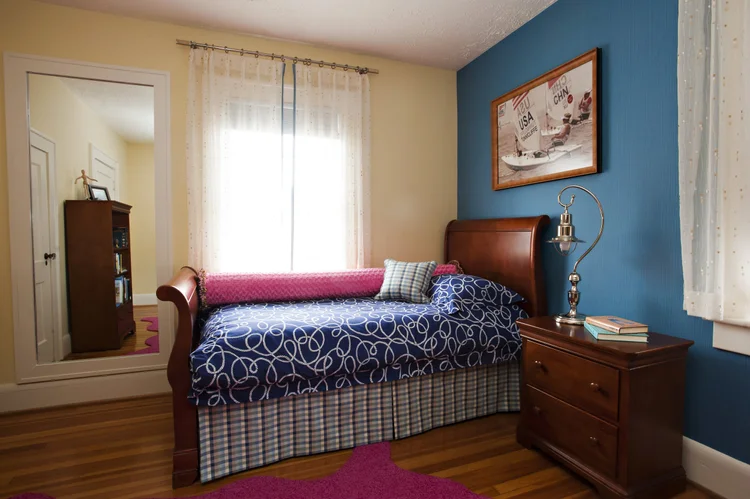 Hidden storage: Teens still need space for all their “stuff.” Add bins under beds, floating shelves, or a storage ottoman.